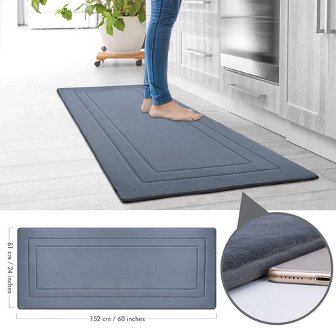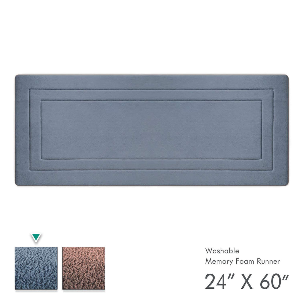 Ellendi Long Memory Foam Bath Mat and Kitchen Rug - Non-Slip Bathroom Runner, Soft and Absorbent, Washable, 24 by 60 Inches, Blue