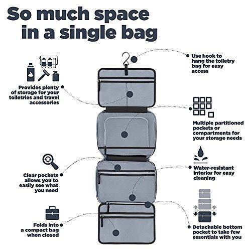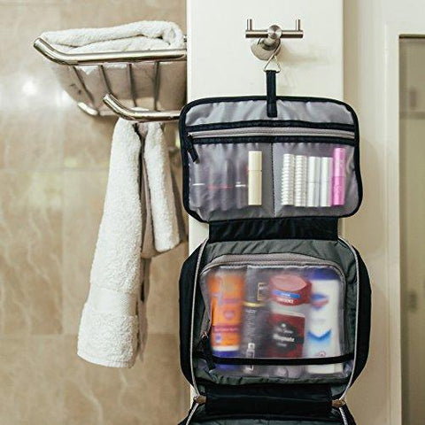 • ELEGANT: Perfect for both men and women, this hanging toiletry kit lays flat on your luggage, duffel bag, backpack, or other travel bags without the unnecessary added bulk, and looks great! It is the best gift for a busy traveler, those out camping with the kids, travelon family vacation or on an international business trip. 100% Satisfaction Guaranteed and Manufacturer Warranty Included
