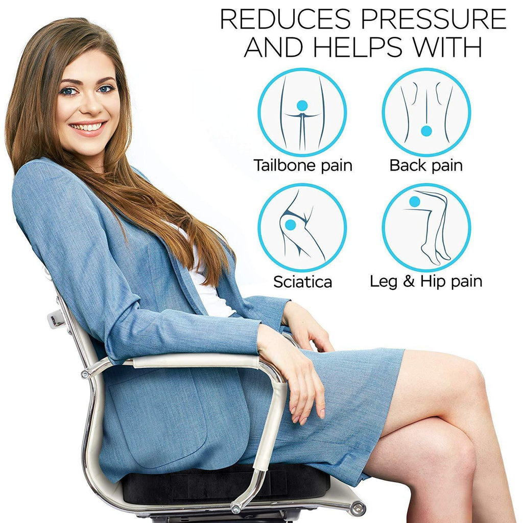 Seat Cushion for Office Chair - Extra Comfortable Orthopedic Memory Foam Coccyx Cushion Pad Relieves Back, Sciatica and Tailbone Pain Great Seat Pillow for Car Seat