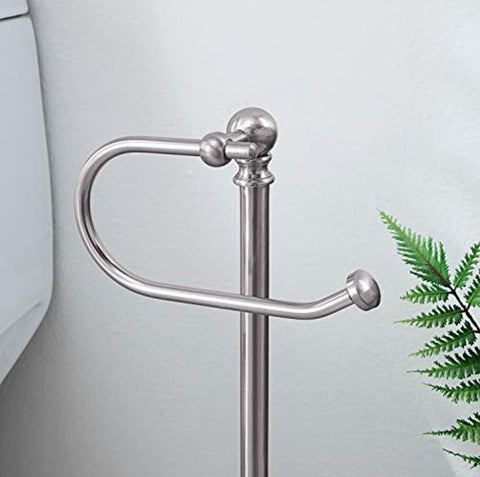 SunnyPoint Classic Bathroom Free Standing Toilet Tissue Paper Roll Holder Stand, Chrome Brush Finish