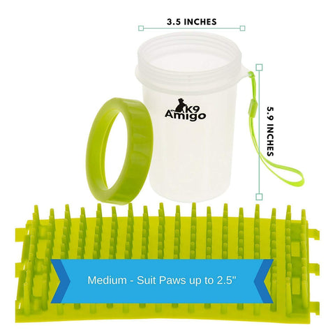 K9Amigo Kleen Pawz Dog Paw Cleaner (Medium) Handy & Portable Paw Washer for Dogs for Clean Paws Anywhere Anytime!, Green