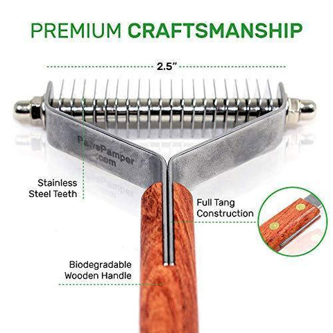 PawsPamper Extra Wide Undercoat Rake for Medium to Large Dogs, Cats - 20 Blade