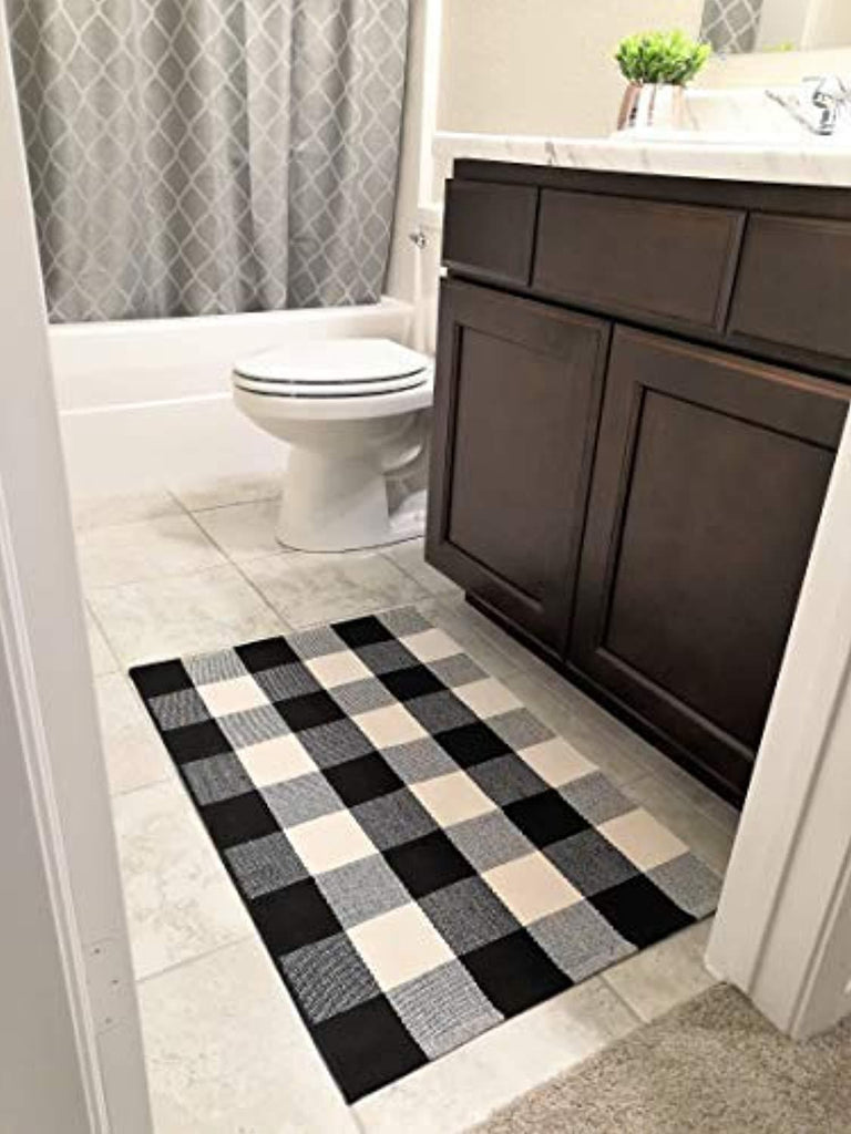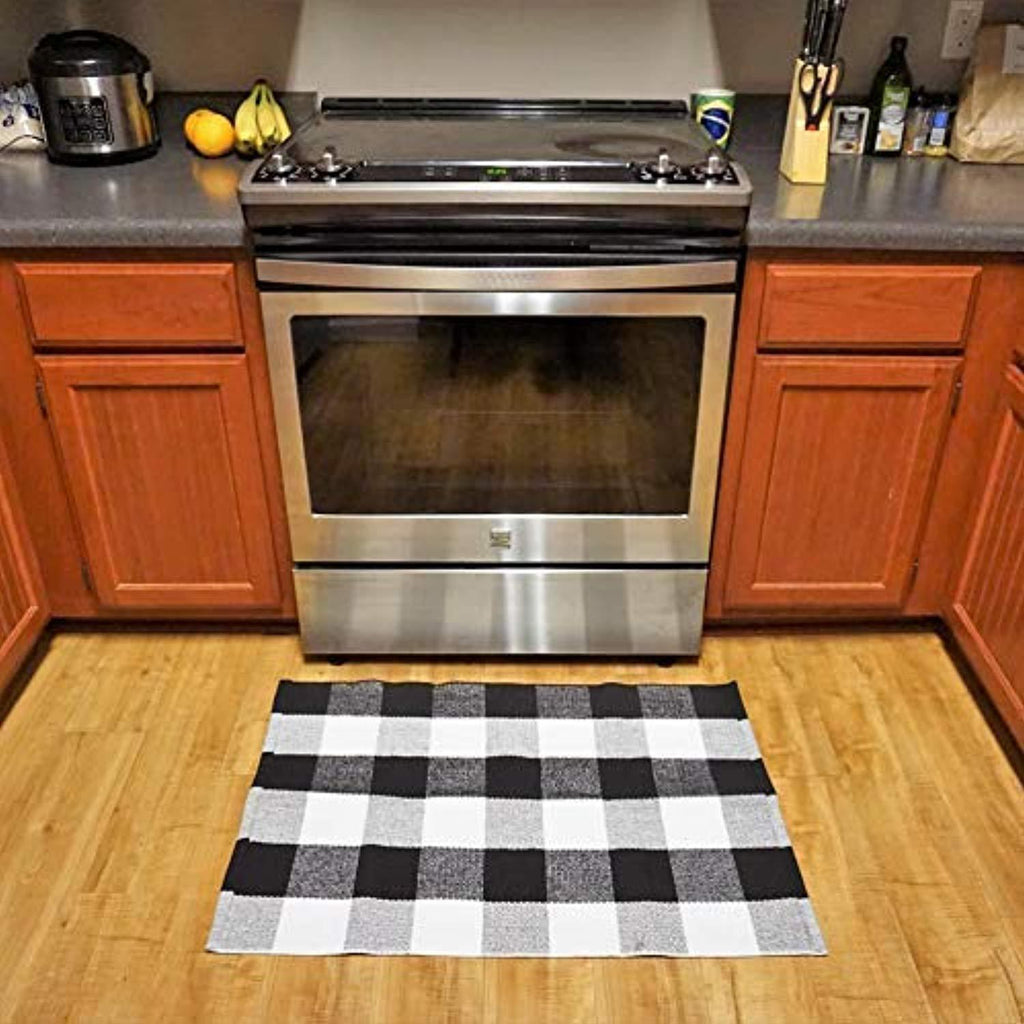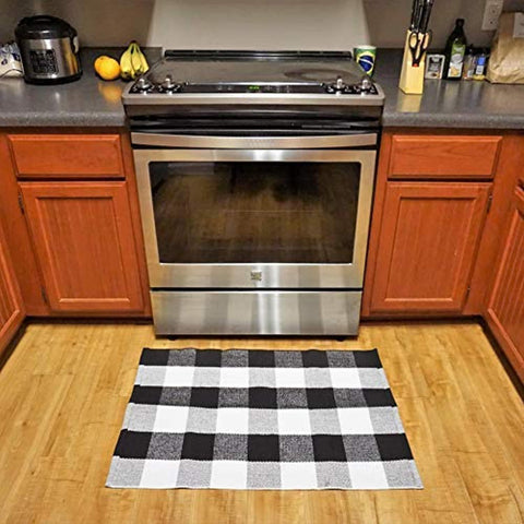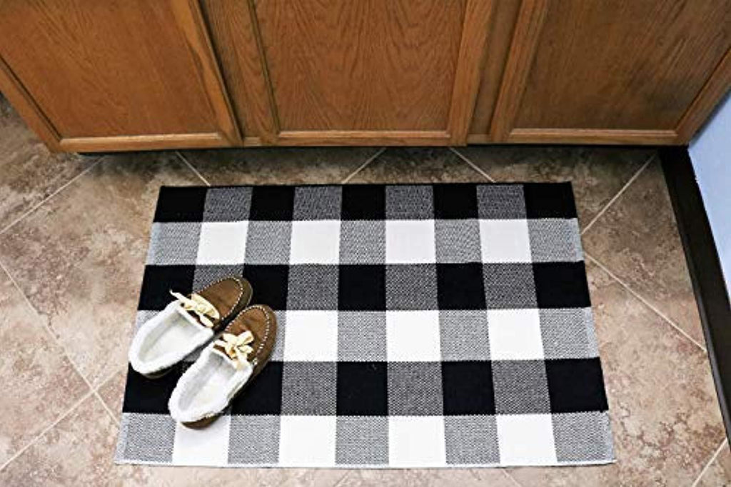 Cotton Buffalo Plaid Rugs Black and White Checkered Rug Welcome Door Mat (23.6"x35.4") Rug for Kitchen Carpet Bathroom Outdoor Porch Laundry Living Room Braided Throw Mat Washable Woven Buffalo Check