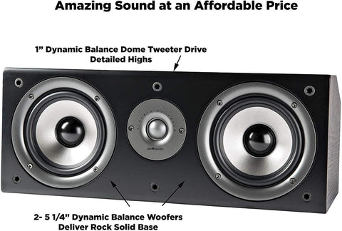 CINEMA SOUND IN THE COMFORT OF YOUR HOME – The CS1 center channel has (2) 5 1/4 inches Polk's Proprietary Dynamic Balance Woofers & a 1 inches Tweeter for detailed high frequency response & more accurate reproduction of audio with very low distortion