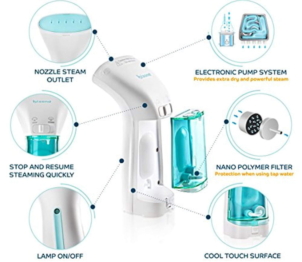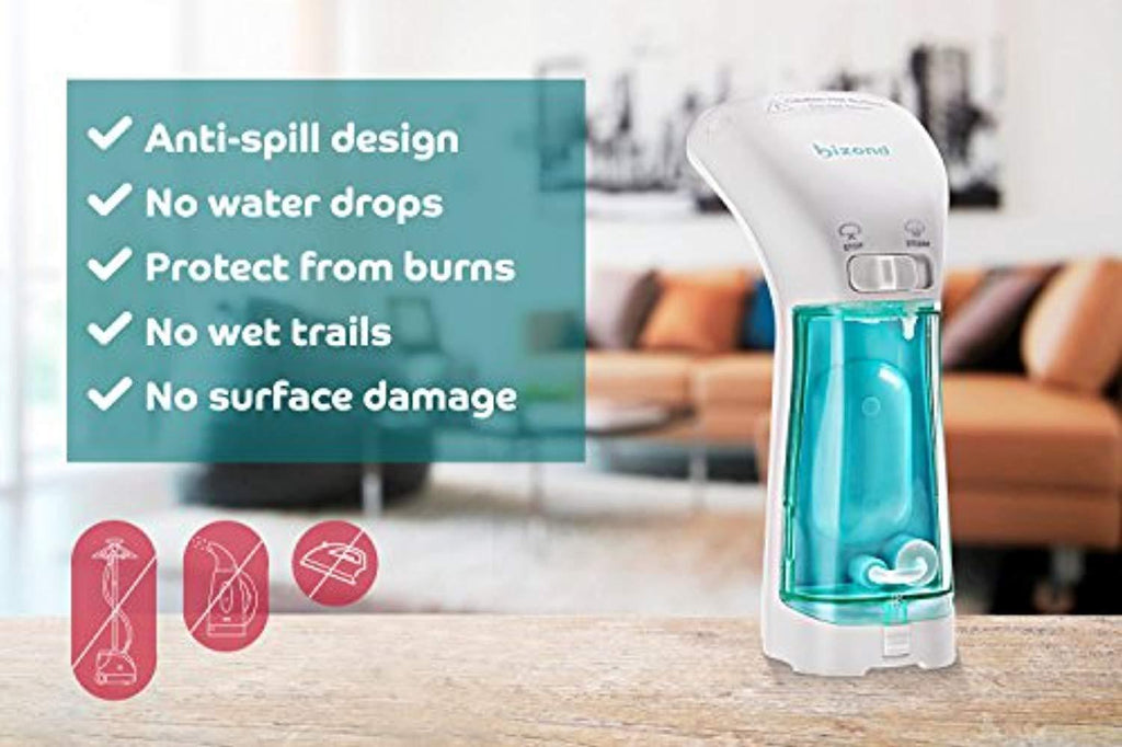 BIZOND Steamer for Clothes Mini - Portable, Handheld Garment Steamer for Travel and Home - No Spitting, Works at All Angles - Best Ironing Steamer for Clothing, Any Fabrics and Curtains (White)
