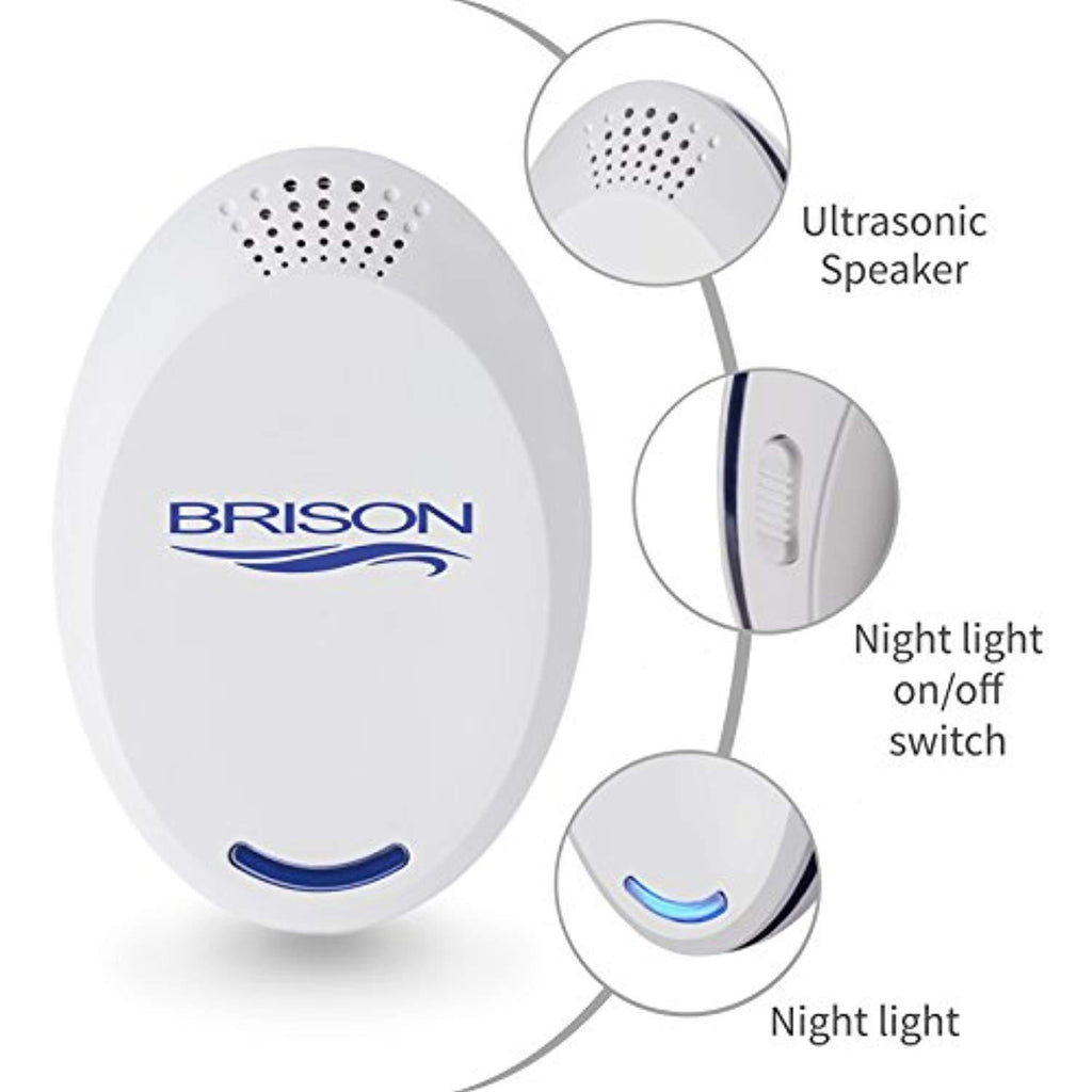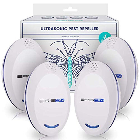 BRISON Ultrasonic Pest Repeller Plug-in Control Electronic Insect Repellent Gets Rid Mosquito Bed Bugs Roach Spiders Fleas Mice Ants Fruit Fl (4-Pack)