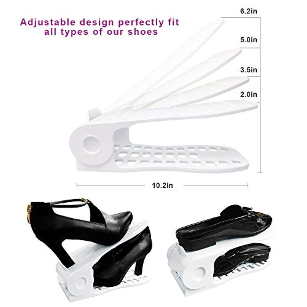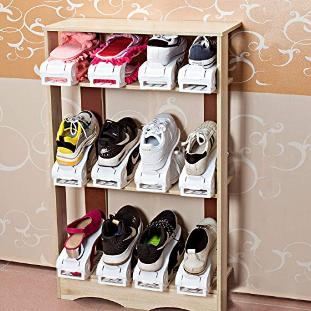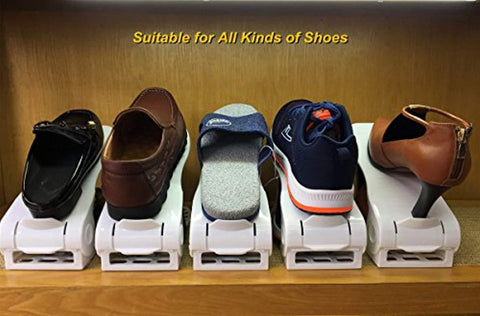 Great space saver:Double layers shoe slotz can fit twice as many shoes on shelves.