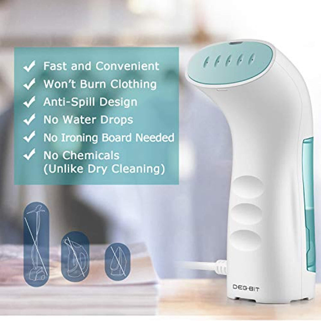 【New Clothes, New You】 Do you really want to use an old, musty ironing board to freshen up your business attire? Do you want to risk staining your new dress with a potentially dirty or broken iron? No way! So get a Degbit Steamer! Our portable steamer is a compact, travel-friendly tool that allows you to easily get rid of wrinkles anywhere! Ready to go in just 25 seconds and holds up to 100ml of water for 8-10 minutes of continuous steaming power. Removes wrinkles in the blink of an eye!