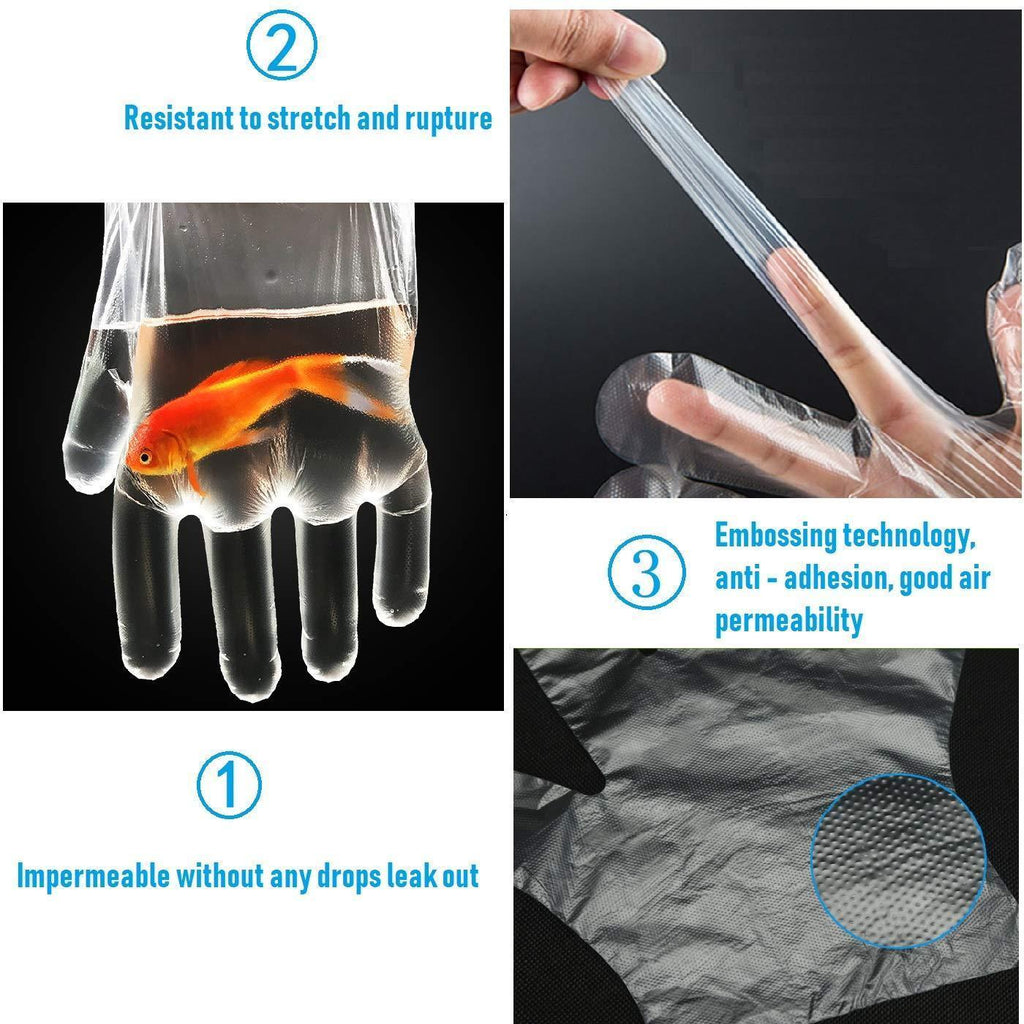 ✅Thick Poly PE Gloves: Good toughness and extra tension,easy to stretch, durable, not easy to break and tear:;Comfortable and smooth touch in hand, easy to wear, no holes and leakage.These high quality Eco-friendly and recyclable cooking gloves are Great Alternative to Vinyl and Loose Fitting Poly Gloves.