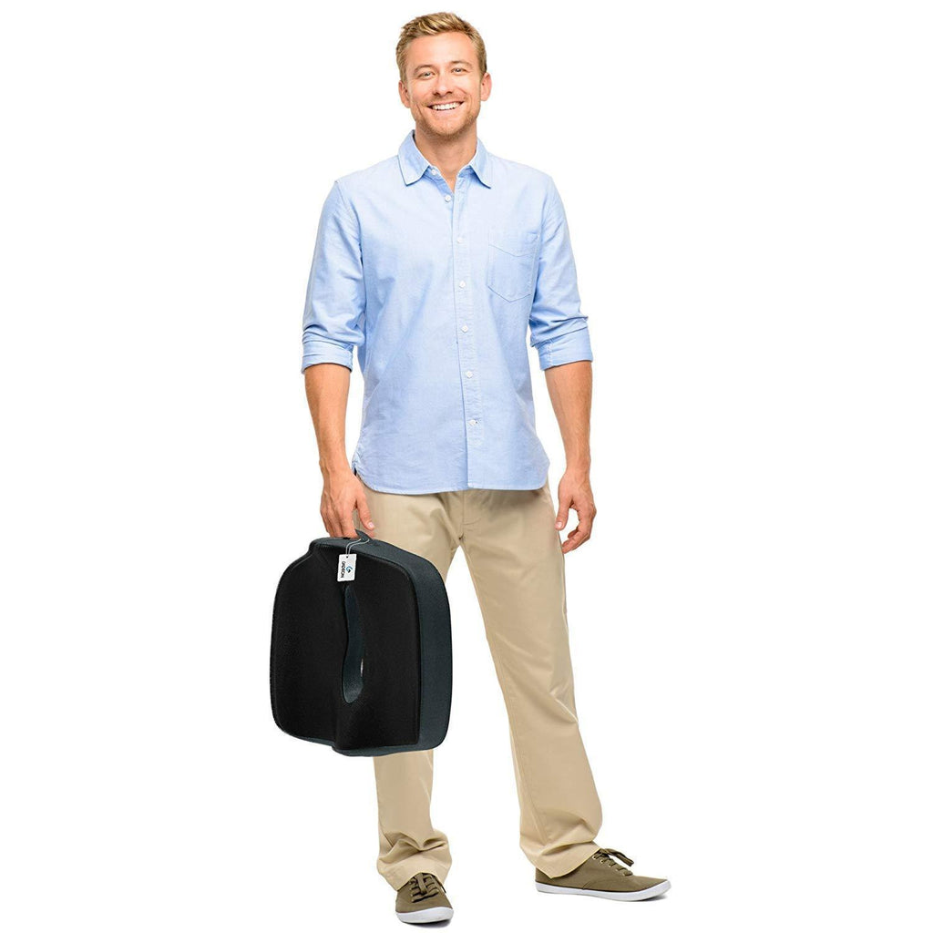 The Gideon™ Orthopedic Seat Cushion provides pain relief by taking pressure off your back, hip, legs, tailbone, sciatica, prostate, perineal, pelvic area, etc., and allows for hours of sitting without experiencing any pain, aches, fatigue or soreness.