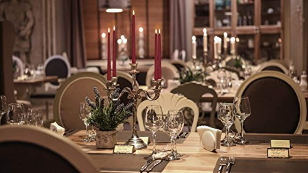 SET THE MOOD: These tall tapered candles feature an elegant design that is suitable for restaurants, special events and parties. Their classic look complements almost any decor.