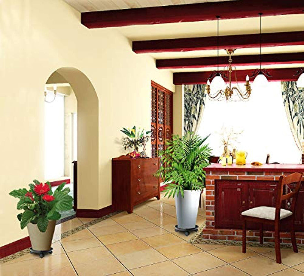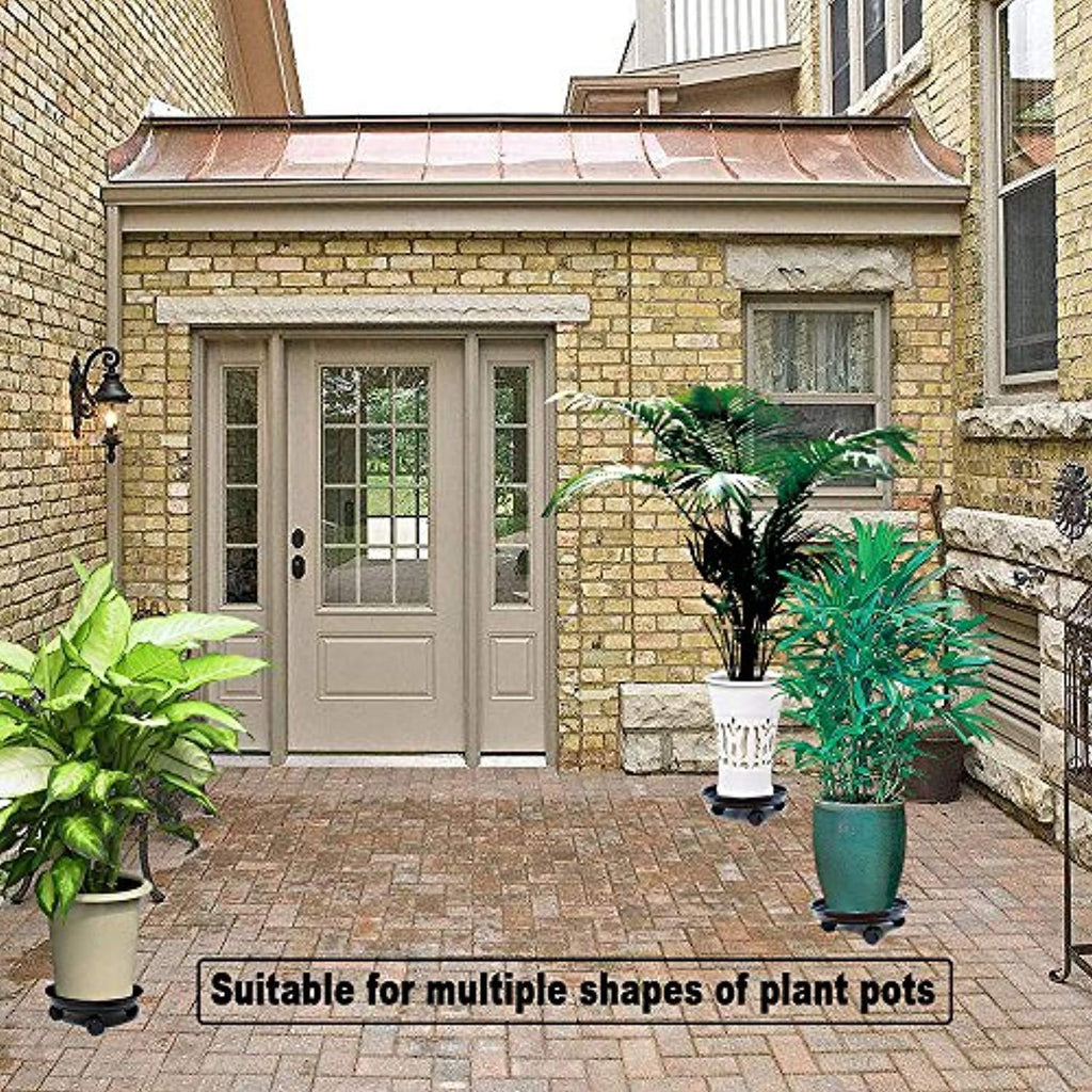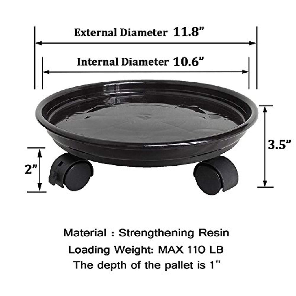 • ●DESIGN AND APPLICATION - Round shape pallet, suitable for multi-shapes of plant pots. And it has the function of water storage, prevent the floor from wetting when you are watering.This plant caddy can be widely used indoor and outdoor for moving garden pots, heavy plants, large potted trees, large vases, whiskey barrels, or heavy trash cans and can protect your floor from being worn out.