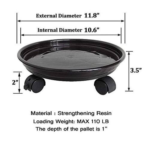 • ●SIZE AND LOAD BEARING - External Diameter:11.8", Internal Diameter:10.6", Height: 3.5", Depth of pallet:1". Please measure the diameter of the bottom of your flowerpot before you buy it. The plant stand is strong enough to hold up to 110 Lbs (50 kg) plant.