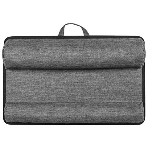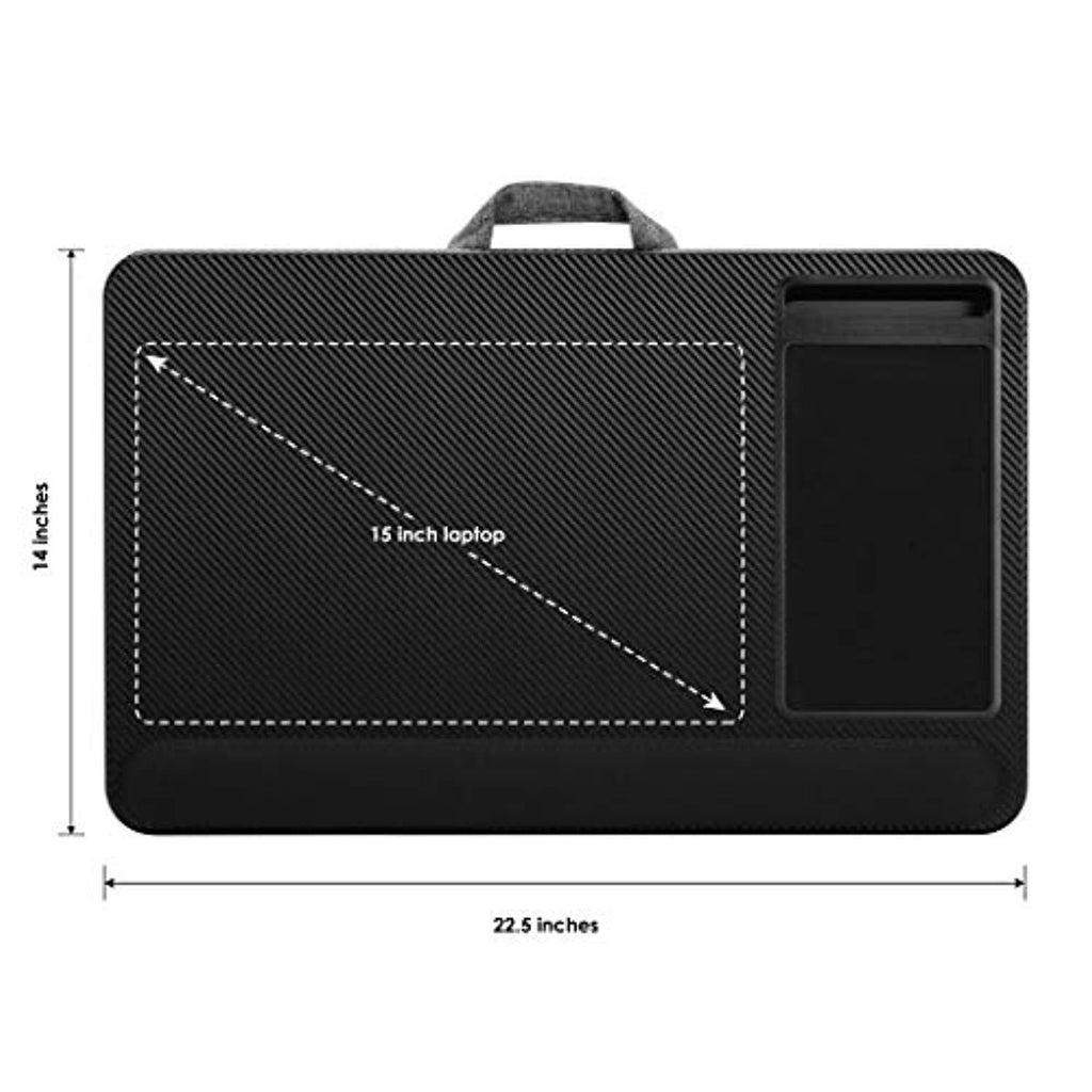 Fits up to 17 inch laptops, while the edit slot holds your cell phone and helps organize your work surface Precision-tracking mouse pad is essential for those who prefer to use a mouse Dual-bolster pillows conform to your lap, providing comfort and stability. 100 percent polyester, linen fabric Ergonomic wrist pad makes typing comfortable and keeps your laptop from sliding Airflow channel reduces unwanted heat generated by the laptop and smooth, flat surface provides proper ventilation for your laptop