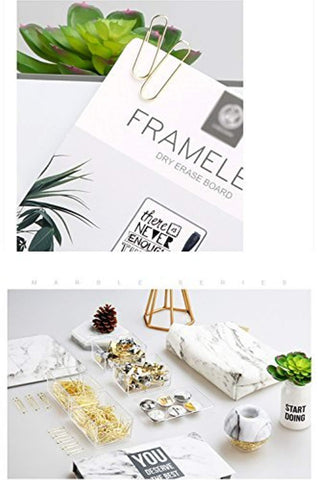 1. Marble design gold paper clip, a luxurious encounter of marble and gold, naturally elegant, naturally beautiful; 2. Steel wire paper clip, smooth finish and gold plating, delivers long-lasting shine; marble printing clip holder with magnet kit inside, pretty and user-friendly; 3. Size at 28mm (1.1"), 100pcs per box; apple shape clip holder size at 2.8" * 2.4" of high quality plastic material; 4. YOU DESERVE THE BEST!
