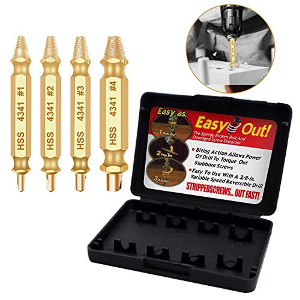 Screw Extractor Set 4 PCS for Damaged Screw Remove and Stripped by Kuenuilr