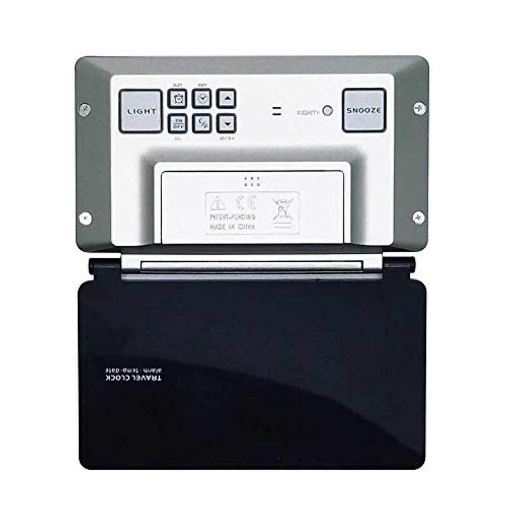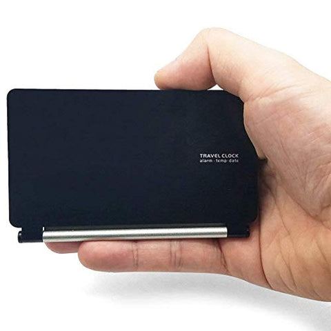 soled Alarm Clock, Travel Clock LCD Mini Digital Table Desk Folding Electronic Alarm with Blue Backlight Black