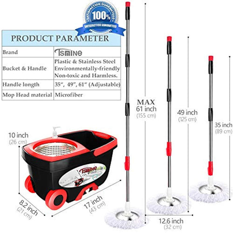 đă100% MONEY BACK GUARANTEEă - Household cleaning can be easily done with Tsmine spin mop & bucket cleaning system. Itâll bring you a different experience and make cleaning easier. We are so proud of Tsmine high quality spin mop, Itâll bring you a different experience and make cleaning easier. Come and buy it soon!