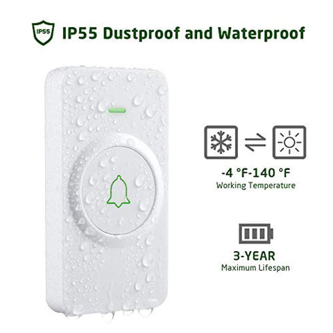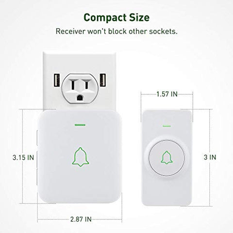 Wireless Door Bell, AVANTEK Mini Waterpoof Doorbell Chime Operating at 1000 Feet with 52 Melodies, 5 Volume Levels & LED Flash