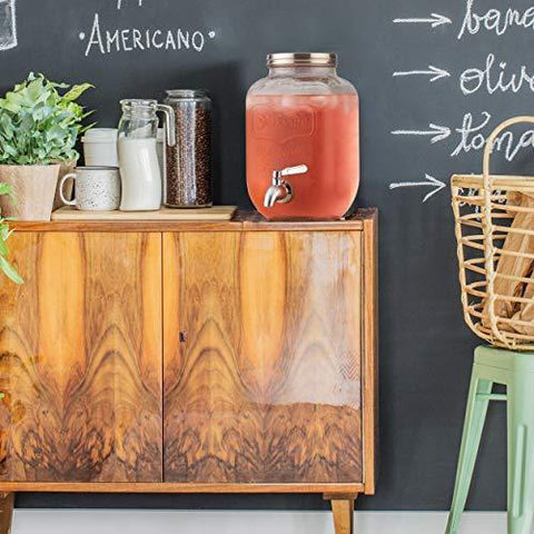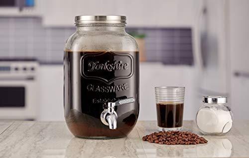 1 Gallon Glass Beverage Dispenser with Metal Spigot - Yorkshire Mason Jar Glassware with Wide Mouth Metal Lid - Great for Iced Tea, Kombucha Fermenting, Juice, Beer, Wine and Liquor