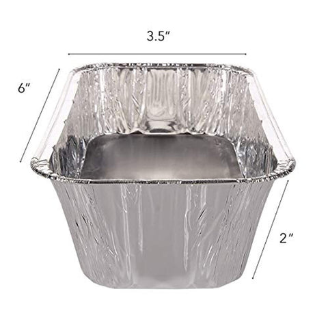 Value Pack includes 30 Aluminum Foil Pans. Dimensions: Pan is 6” L x 3.5” W x 2”H.