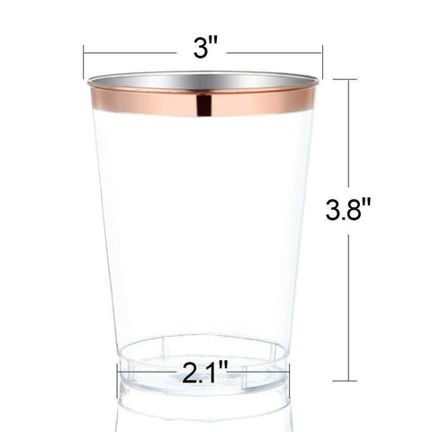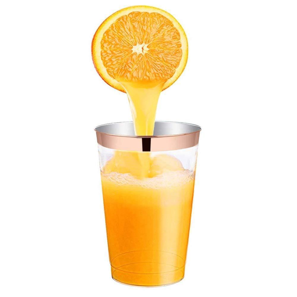 100 Count - 12 Oz Rose Gold Plastic Cups - Clear Plastic Tumblers, Fancy Wedding Cups, Premium Party Cups with Elegant Rim, Disposable Party Cups