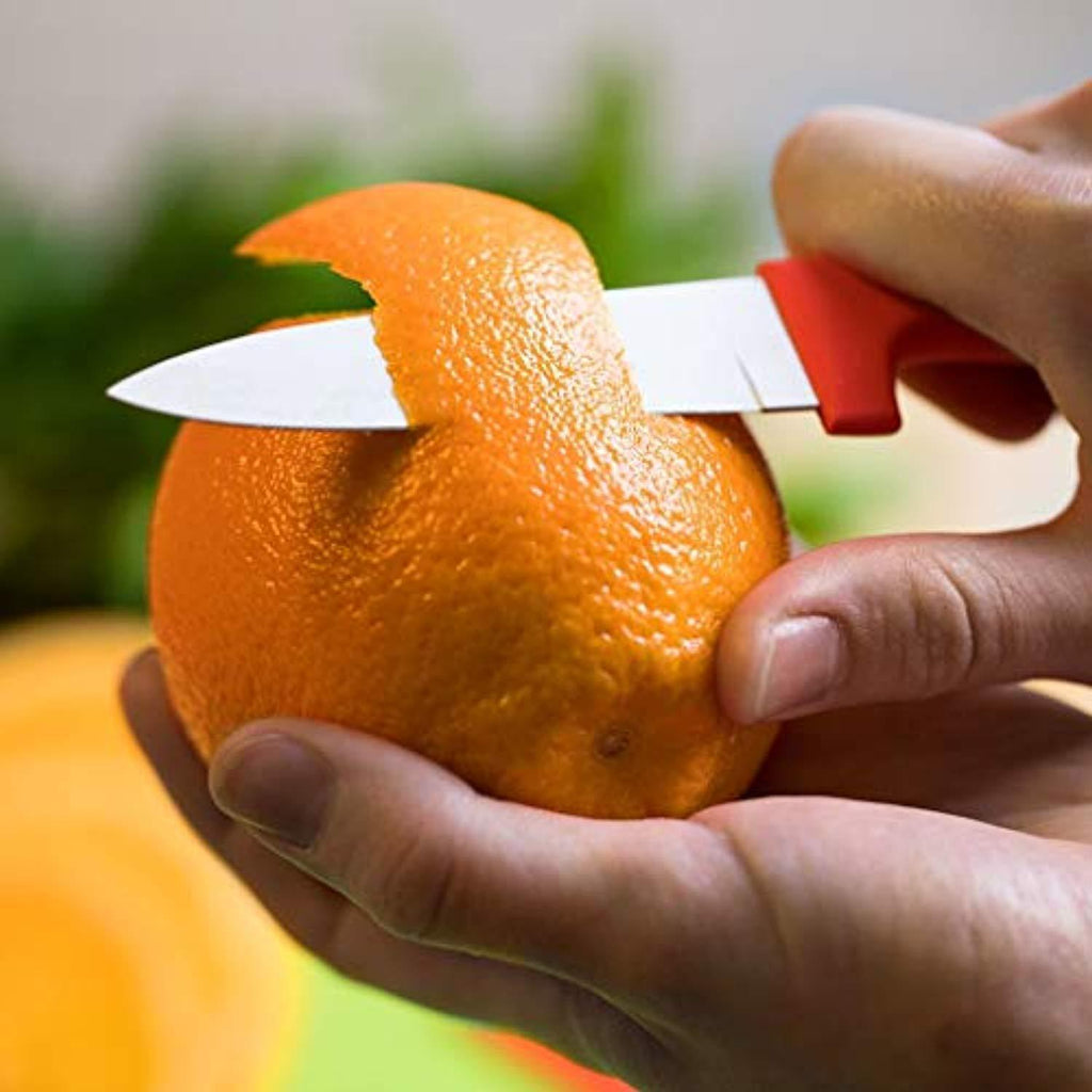 ✅ SHARP & TOUGH BLADES- The knives in our set are designed to withstand repeated use and dishwashing over a long period of time! Stop using those dangerous old dull knives that can barely cut through a tomato without causing a splattering mess. Our knives cut smoothly and efficiently through your produce, and will hold up reliably time after time.