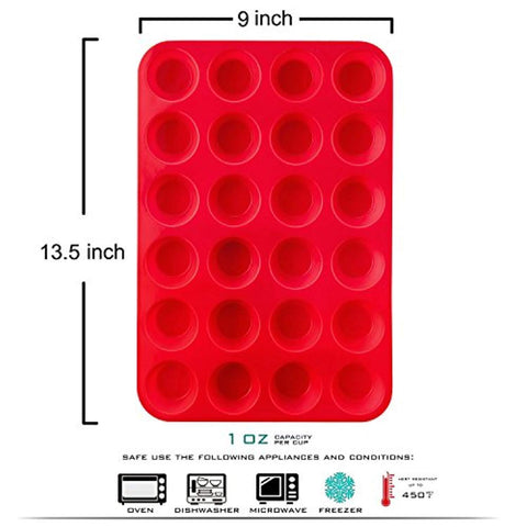 Durable & High Quality Material: Our Silicone Mini Muffin Mold is made from Food Grade Silicone, which is FDA Approved, free of lead and othere toxic material, reusable material for environment protection, durable and long-lasting.