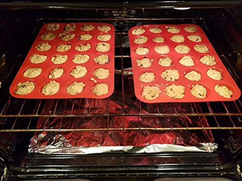 2 Packs Silicone Mini Muffin Pan, Unop 24 Cups BPA-Free Non-Stick Food Grade Silicone Baking Mold Round Cup for Cupcakes/Muffins/Mni Cakes (Red)