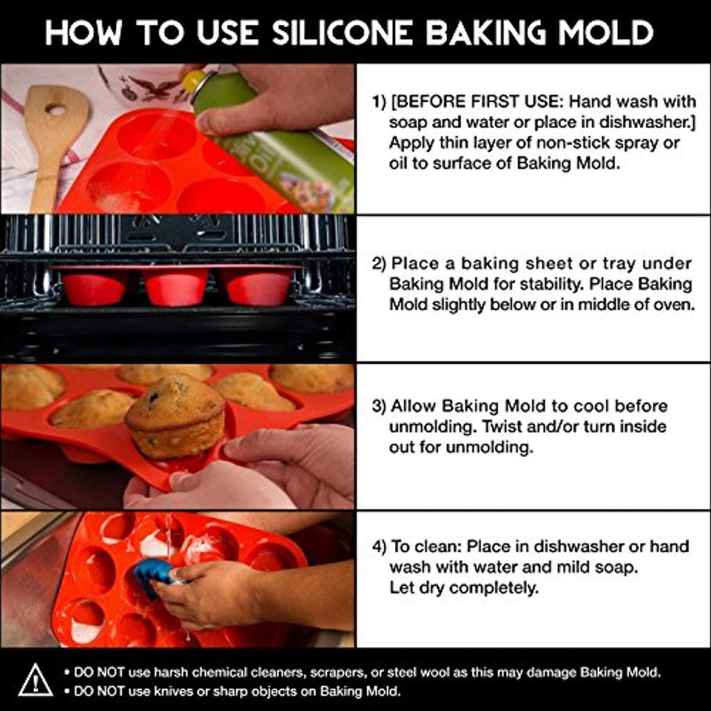 EASY TO USE & NON-STICK: Silicone baking molds are easy to use, high quality silicone with non-stick coating, perfect fit most oven. So you get whole muffins and cupcakes on your plate, instead of half of them left sticking to your baking pan.