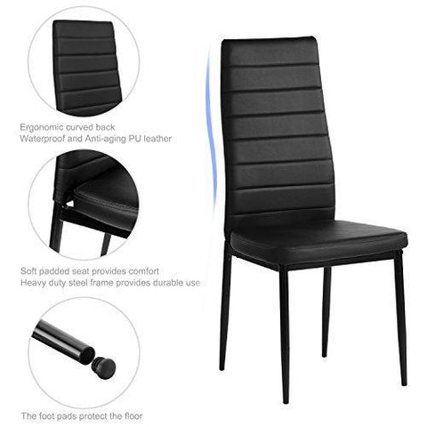 Aingoo Kitchen Chairs Set of 4 Dining Chair Black with Steel Frame High Back PU Leather