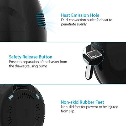 【Homgeek Promise: 1year warranty】Rapid Air Circulation Technology : Use and hot air to fry foods with little or no added oil so that you can both have a healthy lifestyle and enjoy your favorite fried food. We also adopt advanced LED touch screen techniques in order to save your time on cooking.