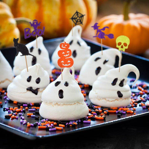 You can add a frightfully fun touch to meat and cheese trays with these spiders, bats, pumpkins and ghosts. They're also perfect for cupcakes! Ideal for a haunted house party or halloween bash.