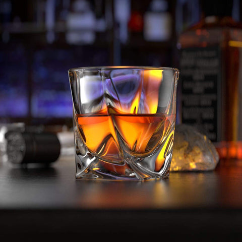 Ashcroft Twist Whiskey Glass Set or 2, Unique Modern Rocks Lead Free Crystal Glasses for Scotch or Bourbon With Luxury Gift Box