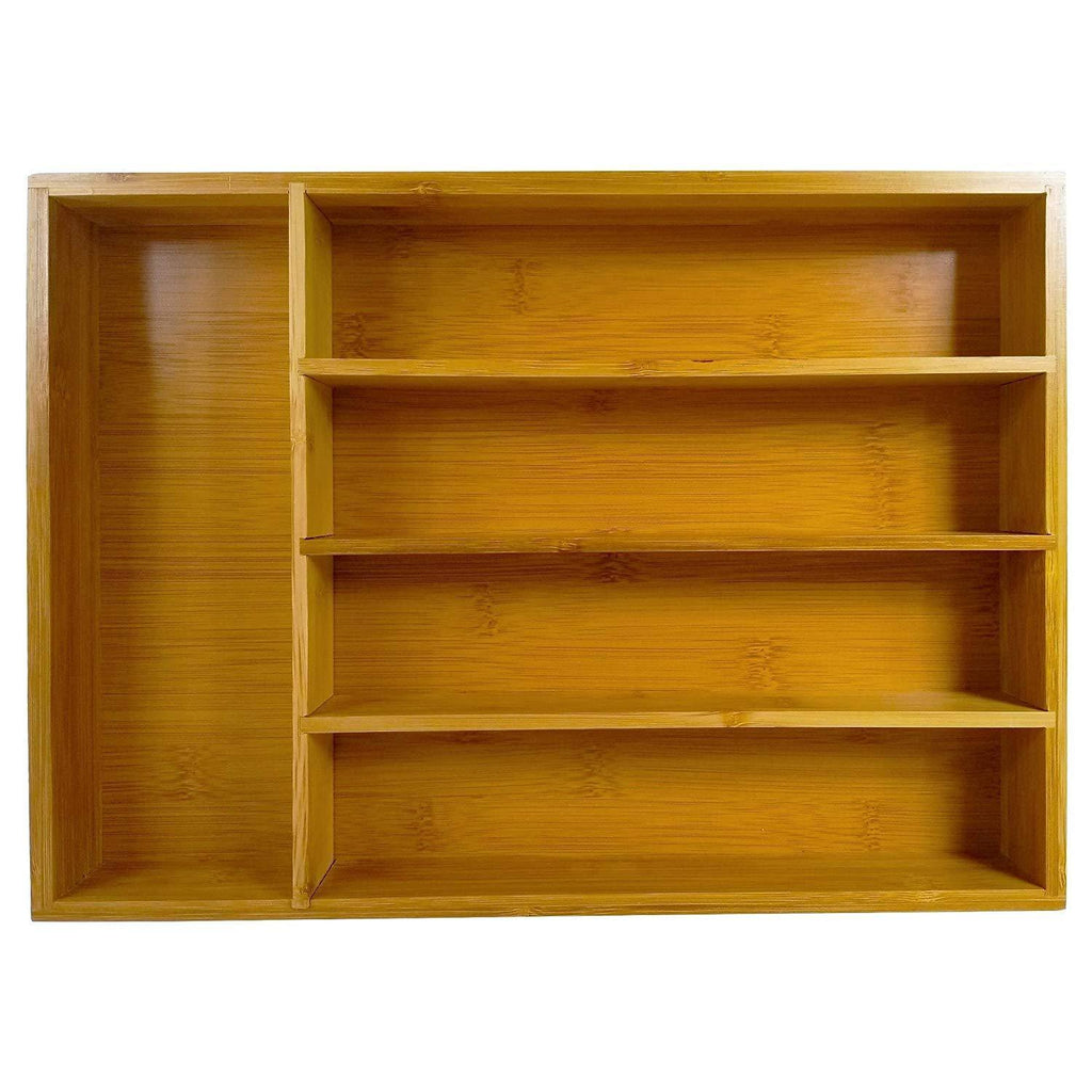 BEST BAMBOO KITCHEN DRAWER ORGANIZER– Organize your cutlery with this stylish and functional bamboo kitchen drawer organizer.