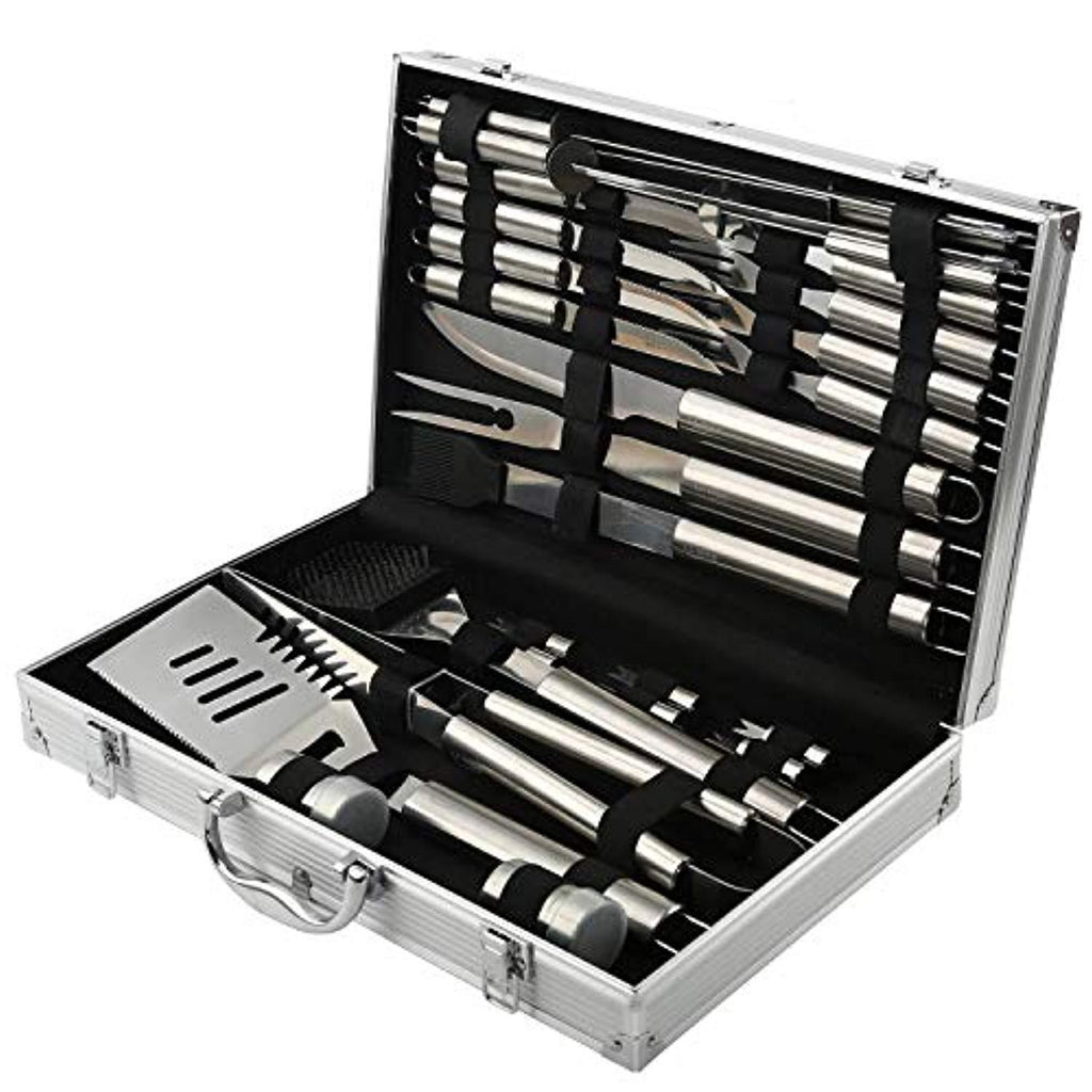 BBQ Grill Tools Set with 26 Barbecue Accessories - Stainless Steel Utensils with Aluminium Case - Complete Outdoor Grilling Kit