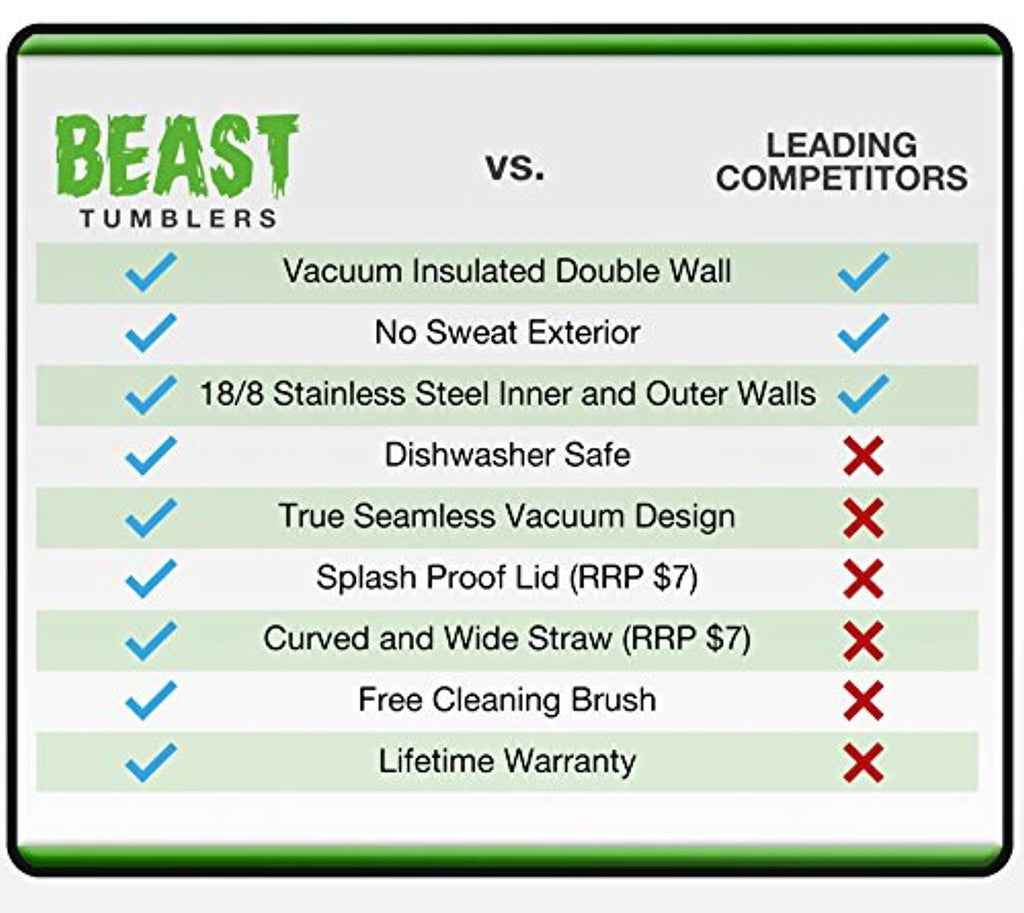 ★ EXCLUSIVE BONUS BEAST BUNDLE - Offering unrivaled value for money: 2 unbreakable steel straws, a free straw brush to make cleaning even easier & 1 splash proof lid presented in a beautiful Gift Box. With so many second-rate tumblers available on the market we wanted to set ourselves apart and be the best!
