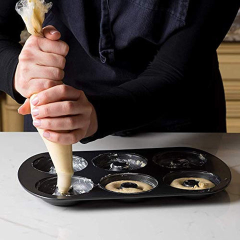 NO MORE SILICONE | CHOOSE STRONG, SAFE PANS: Some silicone pans can leach dangerous chemicals and odors into your food. Our premium 12.5-inch x 8.5-inch nonstick donut pans are manufactured with heavy, reliable, food-rated steel, so you can focus on getting delicious things cooking!