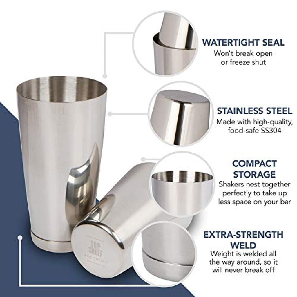 NO DRIPS OR MESSES: Don't take your chances buying shaker tins separately, this set has been selected and tested to offer the perfect water-tight seal. Unlike cobbler shakers, this boston shaker set will not freeze shut, drip or spill as you pour out your drink.
