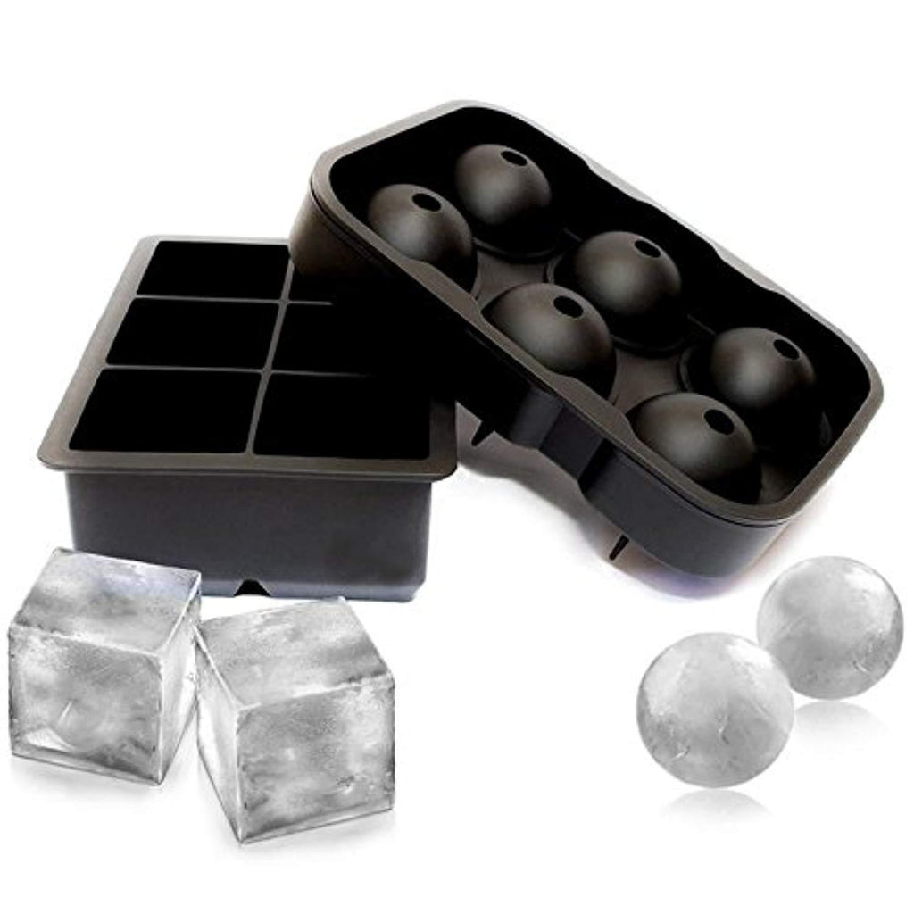 Charmed Ice Cube Trays Silicone Set of 2 - Sphere Round Ice Ball Maker & Large Square Ice Cube Mold for Chilling Bourbon Whiskey, Cocktail, Beverages and More (Black) (Sphere and Cube)