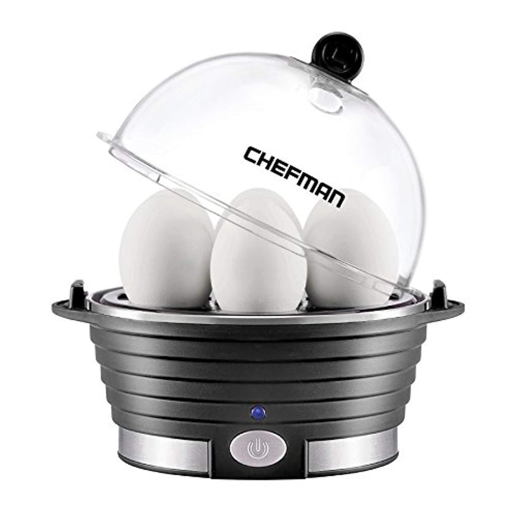 Chefman Electric Egg Cooker/Boiler, Rapid Egg Maker, Countertop, Hard Boil Egg Steamer and Poacher, 6 Egg Capacity With Removable Tray, Small, Black