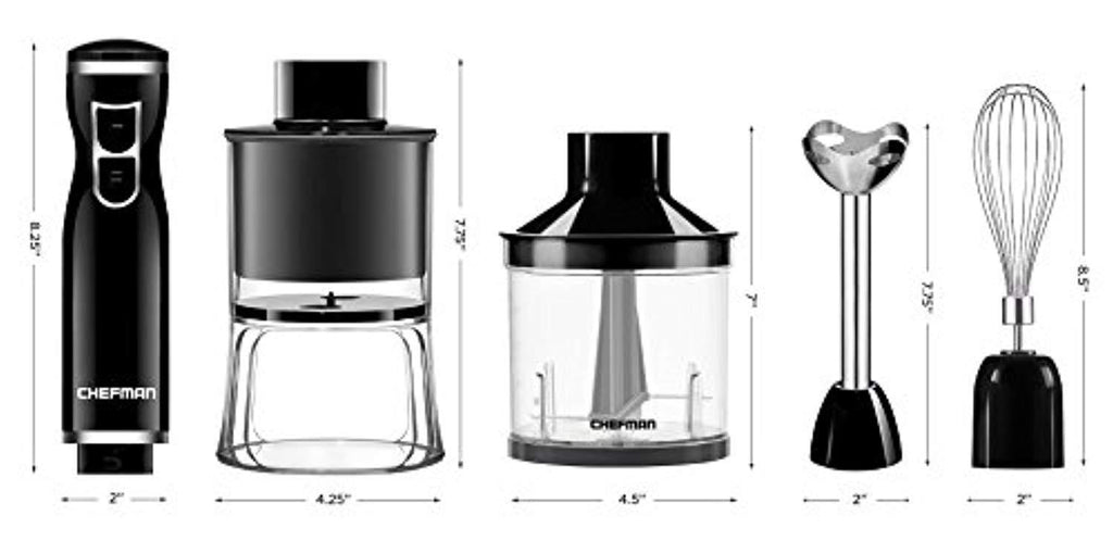 Chefman Immersion Blender & Electric Spiralizer/Vegetable Slicer 6-IN-1 Food Prep Kit, Includes 3 Spiralizing Blade Attachments, Zoodle Maker; Grate, Ribbon, Spiral, Chop, Whisk and Puree