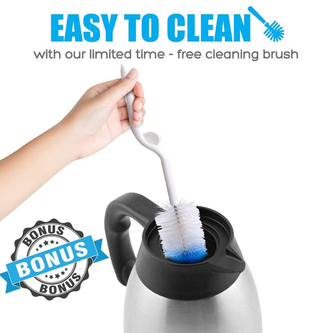 Coffee Carafe (68 Oz) + Free Brush - Keep water hot up to 12 Hours, stainless steel thermos carafes, double walled Large Insulated Vacuum flask, Beverage Dispenser By Vondior