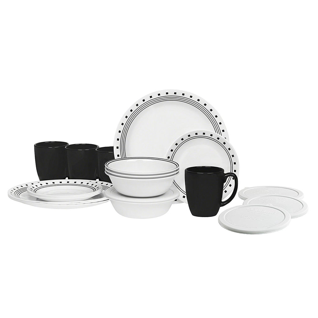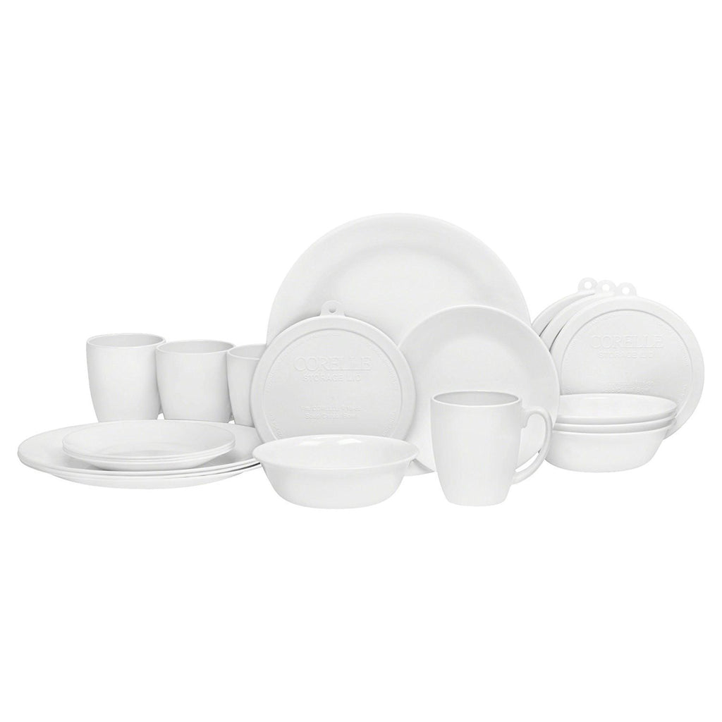 Corelle Winter Frost White Dinnerware Set with lids (20-Piece, Service for 4)