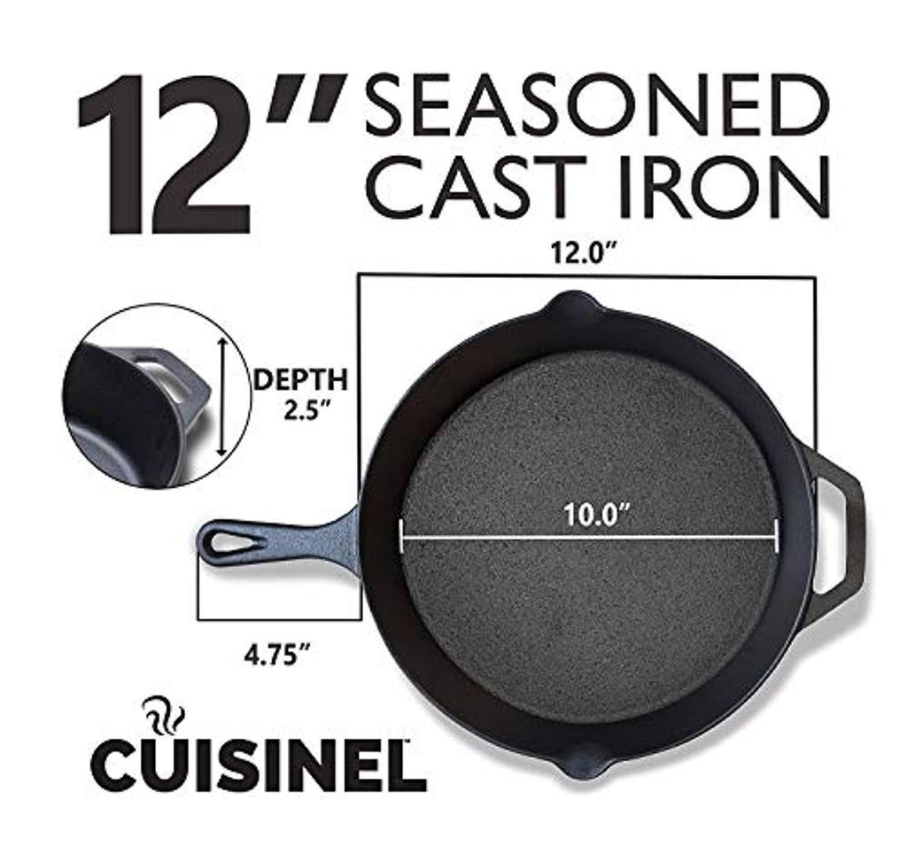 • TRUE COOKING VERSATILITY – The Cuisinel cast iron skillet pan can be used for frying, baking, grilling, broiling, braising, and sautéing meats, vegetables and more!