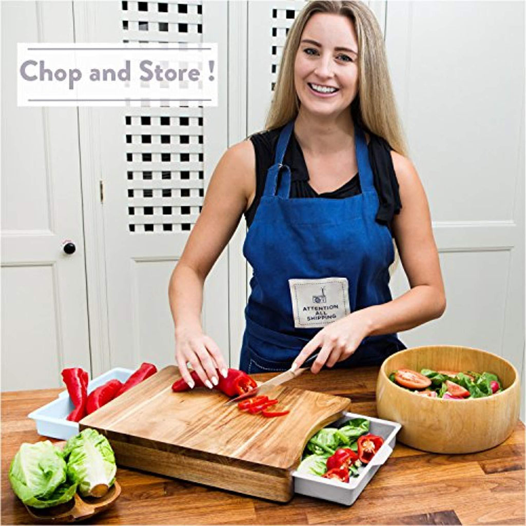 • Wooden Chopping Board with Chop and Store Food Savers or Chop and Trash Plastic Waste Color Coded trays - Organic Wood - 100% Food Safe - No Formaldehyde - Satisfaction Guaranteed