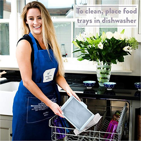 Cutting Board with Trays - Organic Acacia Wood Butcher Block with Containers White Pale Blue - Naturally Antimicrobial - For Meat Vegetables Bread or Cheese Board by Kristie's Kitchen