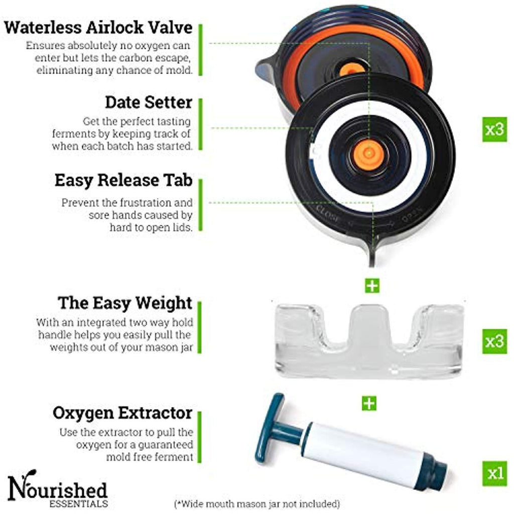 Easy Fermenter Wide Mouth Lid Kit (3 Lids + 3 Weights + Pump) – The Complete Starter Kit With Everything You Need To Begin Fermenting
