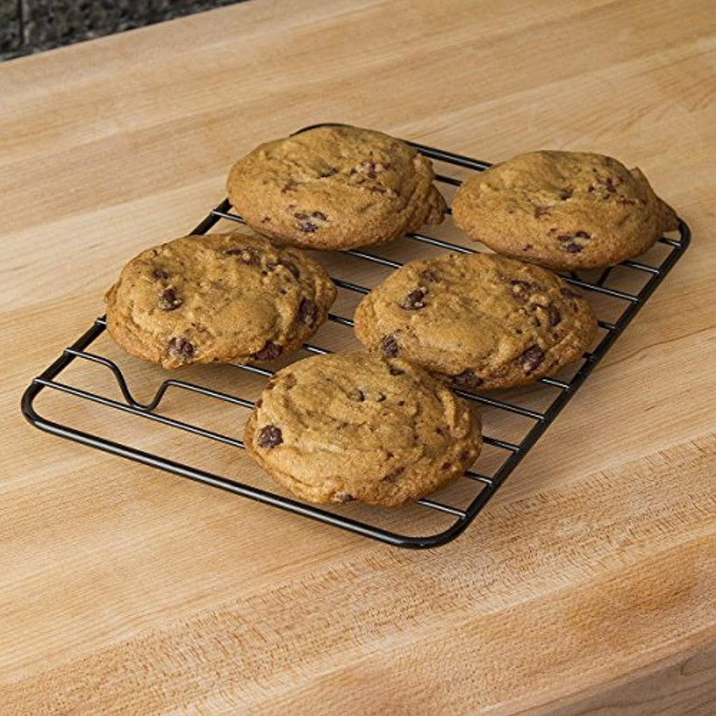 SET INCLUDES – 8.5” x 6.5” Cake Pan, 8.5” x 6.5” Cookie Sheet, 10.25” x 7” 6-Cup Muffin Pan and 7.5” x 5.5” Cooling Rack