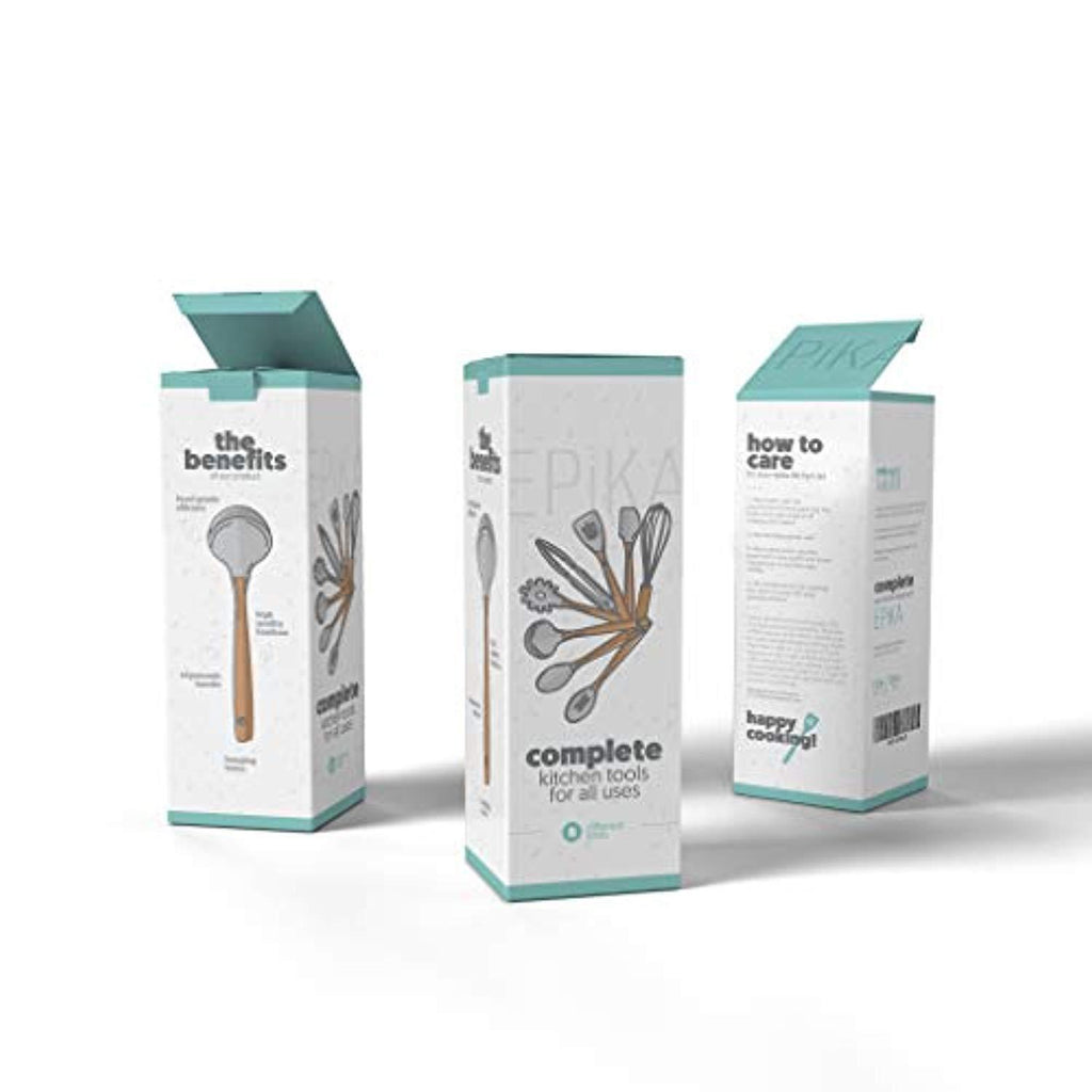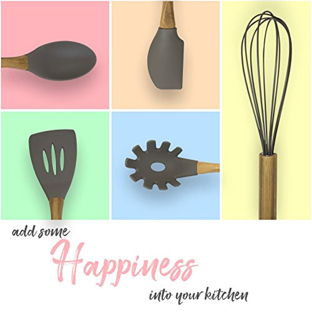 EPiKA Premium Silicone Bamboo Kitchen Utensils Set 9-Piece Cooking Utensils Set with Bamboo Wood Handles for Nonstick Cookware, Utensils Holder Included. Eco Friendly.